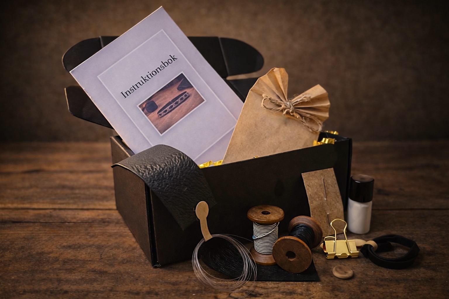 En tydlig instruktionsbok med steg-för-steg-guide ingår, så att du enkelt kan följa processen från början till färdigt armband.