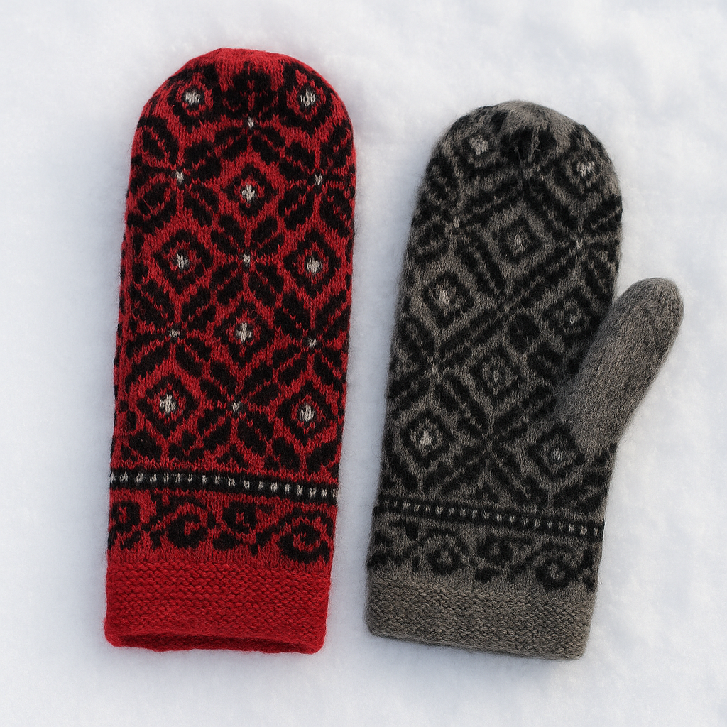 Stickad i mjuk Shetlandsull med klassiskt nordiskt mönster. Fleecefodret gör vanten extra varm och behaglig, perfekt för frostklara morgnar och långa vinterpromenader.