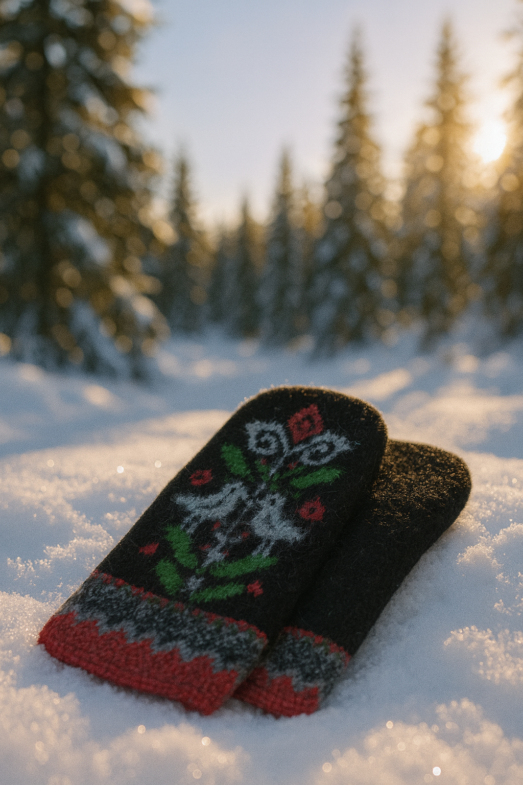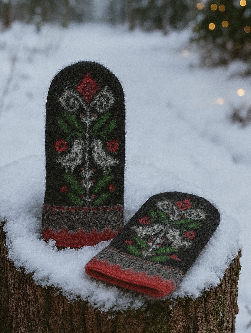 När vintervinden sveper genom granarna håller dessa vantar dig varm med både ull och omtanke.
