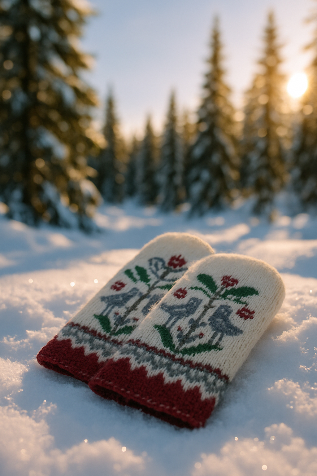 När vintervinden sveper genom granarna håller dessa vantar dig varm med både ull och omtanke. Stickade i borstad Shetlandsull med ett vackert nordiskt fågelmönster bär de på känslan av natur och tradition. Fleecefoder ger en värme som håller, medan den lilla tofsen fångar den där extra touchen av genuint hantverk.