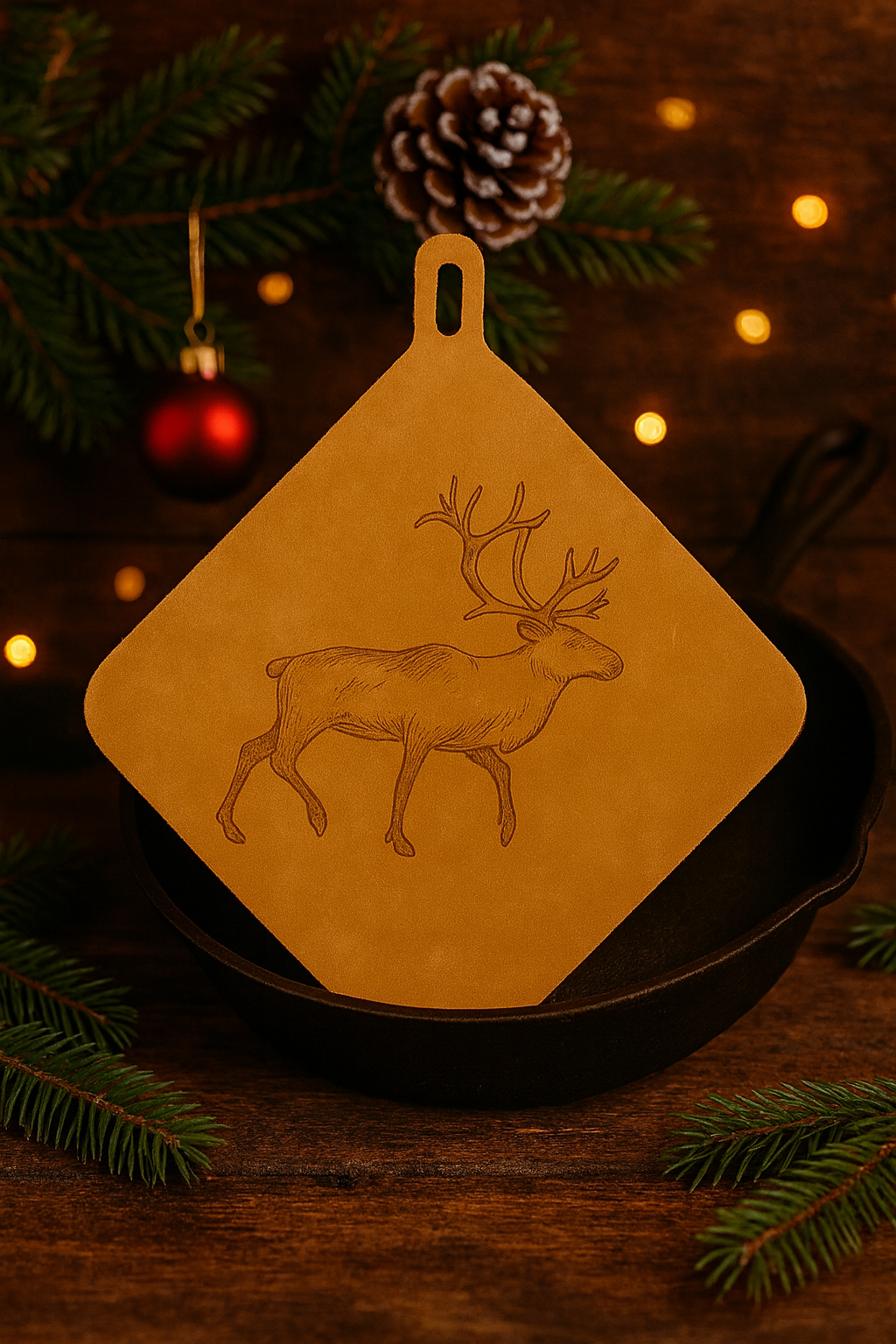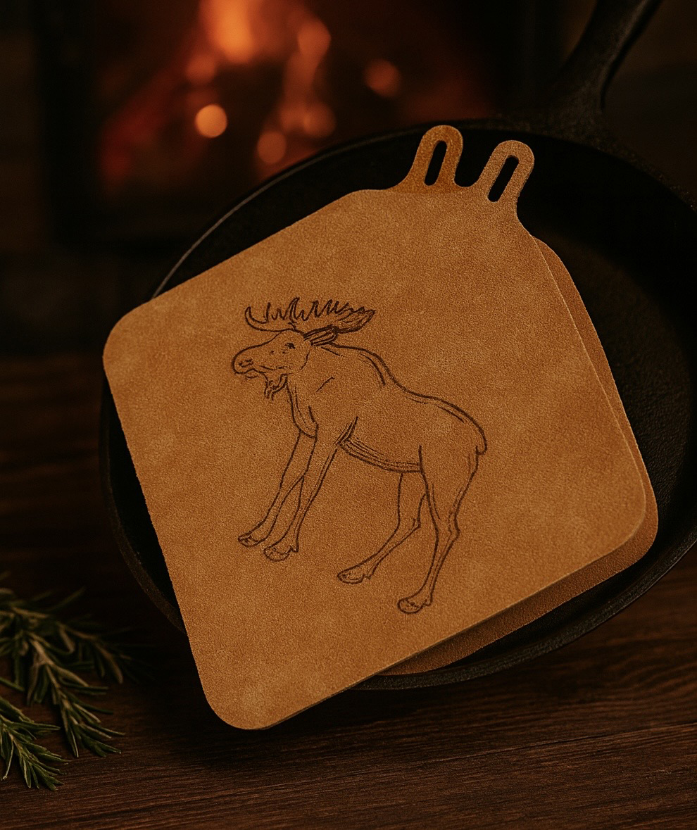 Låt matlagningen bli en njutning för alla sinnen. Denna grytlapp i ljusbrun, mjuk spaltmocka skyddar mot hetta samtidigt som den tillför en elegant och praktisk detalj i köket. Välj mellan två olika motiv eller blank och låt varje stund vid spisen kännas lite mer förtrollad!