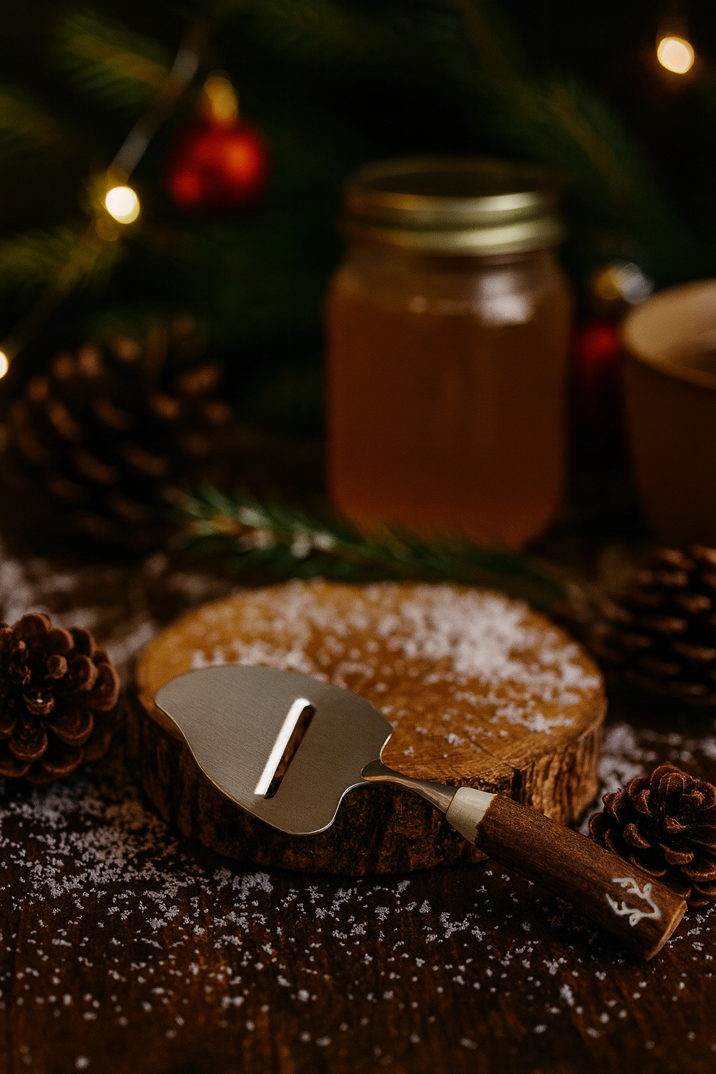Ett stycke nordiskt hantverk med själ. Varje osthyvel är handgjord med ett handtag av äkta renhorn, där naturens egna former gör varje exemplar unikt. En vacker kombination av funktion och naturens magi, skapad för att göra varje måltid lite mer speciell.